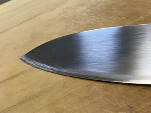特に、切っ先に近いアールのついた部分は研ぎムラを防げない。