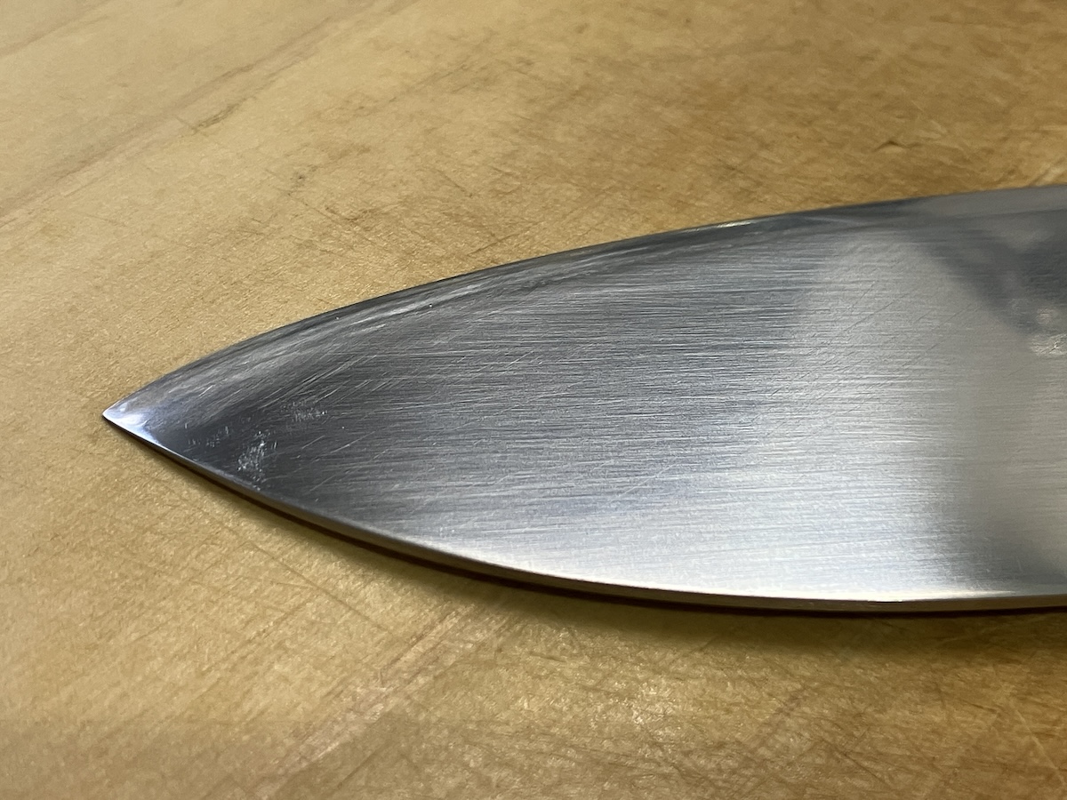 特に、切っ先に近いアールのついた部分は研ぎムラを防げない。