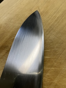 裏は紫陽花で刃を薄めたので、刃境辺りまで研ぎ傷が確認できる。