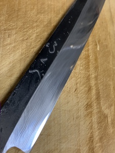 刺身包丁は、吉野で刃金、切り刃の順に研いで、